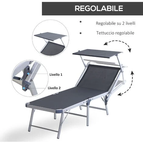 - • Doppia funzione: lettino sdraio e tetto per proteggerti dal sole