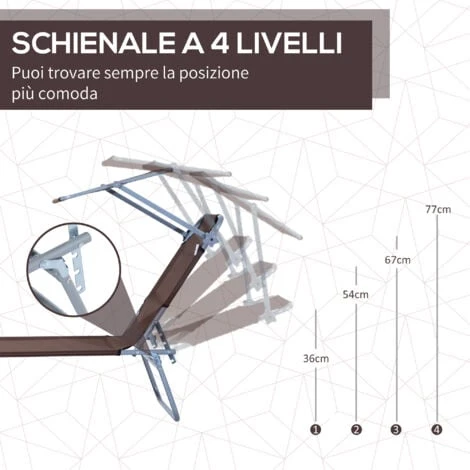 - • Dimensione da reclinata: 187L x 58P x 36Acm