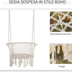 Infondere stile ed eleganza alla tua casa richiede poco sforzo, se hai questa elegante amaca da giardino Outsunny. Realizzata in stile boho chic, ha un telaio in metallo ed è rivestita in tessuto poliestere. La struttura è decorata con frange e nappe in macramè, per dare un’atmosfera romantica e ricercata al tuo ambiente.