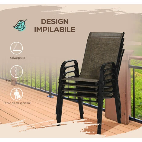 Concediti un momento di pausa all’aperto e accomodati sulle tue nuove sedie da giardino Outsunny. Realizzate con un telaio in metallo e una seduta in tessuto a rete, queste sedie da esterno sono traspiranti e comode, perfette per affrontare le calde giornate estive. Impilabili e salvaspazio, le sedie si ripongono comodamente in cantina o in garage con il minimo ingombro a fine stagione.