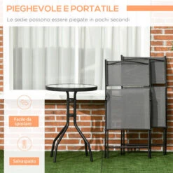 - • Set di tre pezzi: due sedie e tavolo rotondo con design pieghevole e salvaspazio