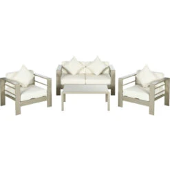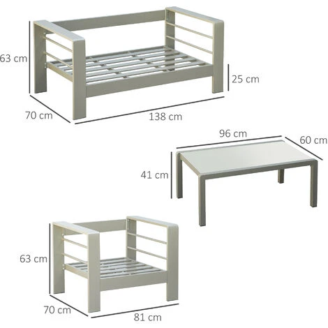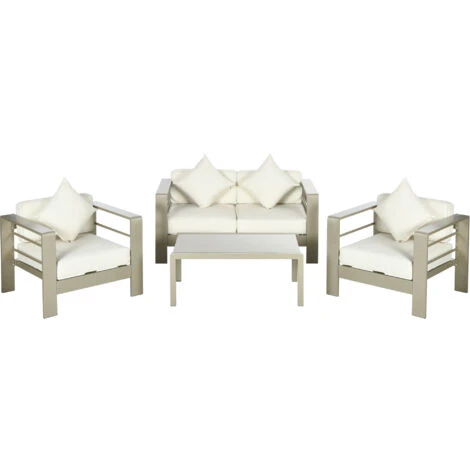 Questo set da giardino da 4 pezzi di Outsunny è composto da un divanetto per esterni insieme a due poltroncine da giardino e un tavolino da caffè. La struttura in alluminio garantisce una buona resistenza al peso ed il suo rivestimento a polvere protegge dalle intemperie. I cuscini inclusi con spessa imbottitura assicurano un comfort extra. Goditi i momenti all’aperto con questo set da giardino, non solo bello ma anche facile da pulire.