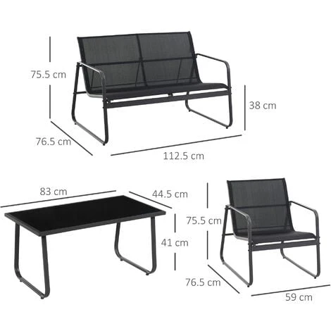 - – Capacità di peso: 45kg (tavolo), 110kg (sedia), 200kg (panchina)
