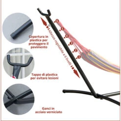 Questo supporto per amaca è perfetto per chi vuole rilassarsi sul balcone e sul terrazzo. Telaio in metallo robusto resistente alle intemperie e all’usura. Ogni estremità ha 6 buchi per regolare l’installazione dell’amaca. Perfetto per balcone, terrazzo, giardino, ecc. Facile da installare con accessori e istruzioni incluse.