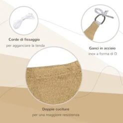 - • La tenda a vela dispone di una corda bianca per il fissaggio