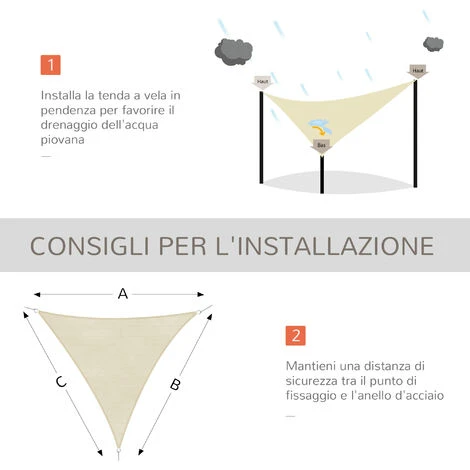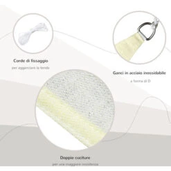 La nostra tenda a vela, fatta di tessuto leggero e resistente all’acqua, è perfetta per creare una fantastica zona d’ombra, ideale per trovare refrigerio nelle giornate più calde.