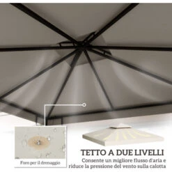 Questo tetto di ricambio per gazebo da giardino è un’ottima scelta per sostituire il vecchio tetto del vostro gazebo. Il nostro prodotto è realizzato in tessuto di poliestere 100% ultra resistente e duraturo nel tempo. Con rivestimento di PA, dispone di un’efficace blocco del sole. In più, garantisce una buona circolazione dell’aria grazie al doppio tetto. Con il nostro tetto per gazebo di elevata qualità , potrete passare un momento di relax con la famiglia o gli amici all’aperto.
