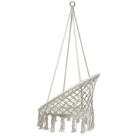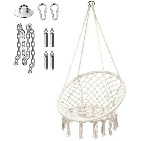 SICURA E ROBUSTA: La nostra sedia è tanto bella ma nello stesso tempo robusta. Le corde di cotone sono molto spesse e la catena di ferro è davvero robusta da sostenere fino a 120 kg di peso. Il kit di ferramenta per appendere non è incluso ma basta un tassello per soffitto in cemento o un occhiello a vite per un soffitto in legno.