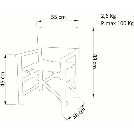 struttura in alluminio anodizzato 40x20x1,4mm e 40x16x1,2mm tessuto beige in textilene 2 x 1, portata massima 100 kg dimensioni: cm 55 x 46 x 45/88 h