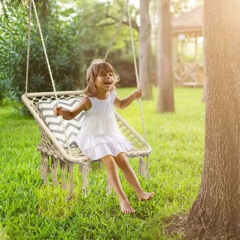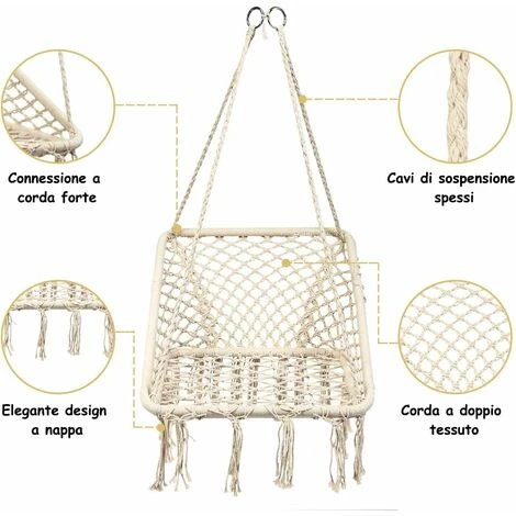 Struttura sicura e stabile: Con una struttura solida in acciaio, la sedia pensile con corde resistenti è stabile e dura a lungo. Inoltre, il gancio in acciaio e le 4 linee inspessite reggono fino a 120 kg di peso, garantendo la sicurezza di adulti e bambini.