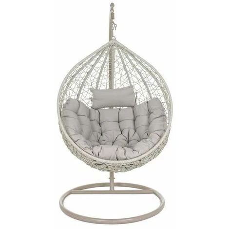 Le poltrone appese da giardino sono un vero tocco d’eleganza per ogni set da esterno. Con queste poltrone, il vostro set da giardino assume immediatamente un aspetto più accogliente, originale e piacevole. La poltrona sospesa da giardino in fibra sintetica Natural è un mobile da esterno perfetto per ogni ambiente outdoor, sempre in grado di regalare il massimo del comfort e della bellezza. La sedia appesa è composta da una base con struttura in ferro, con diametro di 105 cm e un’altezza da 1.89 m, a cui si appende la poltrona in fibra sintetica con forma allungata sullo schienale. La poltrona appesa è dotata di comodi e morbidi cuscini da esterno in poliestere, stesso materiale della loro imbottitura. Ne viene fuori una poltrona da salotto da giardino, ma anche un dondolo sospeso, comodo ed elegante, con una seduta abbondante che non crea alcun problema di comfort.