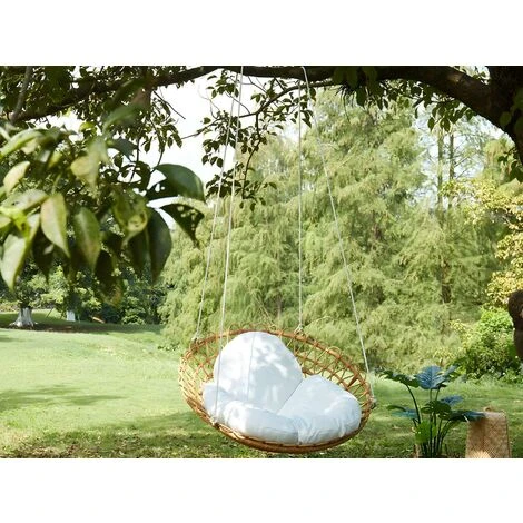 Per appendere la poltrona sospesa ELIOA, trova inanzittutto una base ben solida. Passa poi le corde attraverso i 4 ganci della poltrona. Infine, fai dei nodi stretti sui ganci per fissarla.