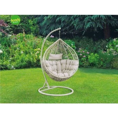 Poltrona sospesa Salice, un elemento che, da solo, può regalare eleganza, comfort e impatto al tuo arredo giardino. La poltrona uovo sospesa ha una base in metallo da 108 cm e una struttura sempre in metallo alta 198 cm su cui viene appesa, con corpo in fibra sintetica e set di cuscini abbinati in poliestere che regalano morbidezza e grande comodità. La poltrona salice sospesa mette, quindi, insieme un elegante impatto visivo, con un comfort totale, aumentato anche dall’effetto cullante che una poltrona a dondolo sospesa può avere. Tuttavia, si adatta perfettamente a ogni tipo di spazio outdoor e si integra bene con molti stili di arredamento giardino eventualmente già presenti nella stessa location.