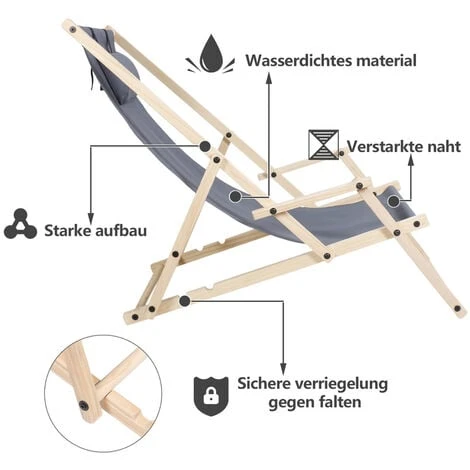 – Le sedie a sdraio in legno creano un’atmosfera confortevole. In spiaggia, in giardino o sul balcone, questo lettino permette di rilassarsi e godersi il sole.