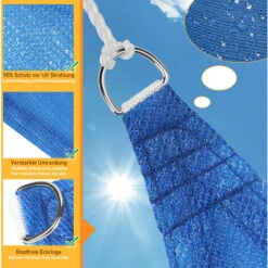 La vela ombreggiante è realizzata in tessuto ad alta densità , è resistente all’acqua e al vento, ha un grado di protezione IP65 e può bloccare la maggior parte dei raggi UV. Ideale per l’estate all’aperto con un’ombra estesa; i bordi sono rinforzati con