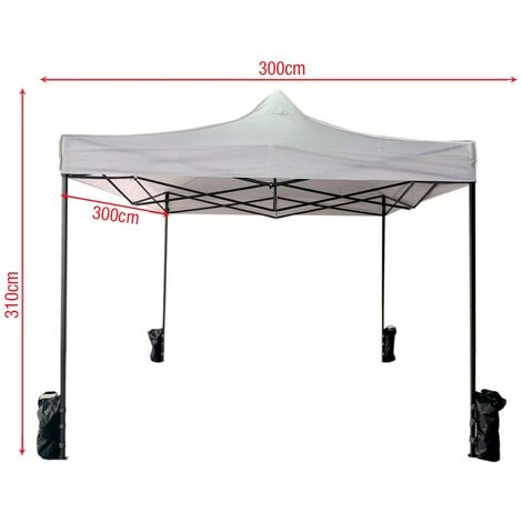 • Il gazebo Rebecca è utile come gazebo da esterno. In terrazzo o giardino è adatto per creare una zona ombreggiata, al riparo dal sole. E’ adatto per feste e matrimoni o in campeggio. E’ perfetto come gazebo da mercato per esporre e tenere al riparo la tua merce. Richiuso occupa poco spazio. Puoi riporlo nella sacca in dotazione, provvista di manici che ti permettono di trasportarlo facilmente. Nella confezione sono inclusi 4 pesi da riempire, ideali per tenere la struttura salda al terreno. La parte superiore ha una struttura a fisarmonica facile da aprire e chiudere con rivestimento in poliestere impermeabile e lavabile. • MISURE: Dimensioni aperto: H 3,1 mt x L 3 mt x P 3 mt • Dimensioni chiuso: H 1,5 mt x L 0,25 mt x P 0,25 mt • Altezza max gambe: 1,90 mt