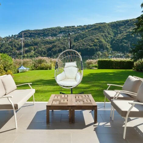 – CON CUSCINI IMBOTTITI E ALTEZZA REGOLABILE: La sedia a dondolo sospesa Rebecca è progettata per offrirti il massimo del relax durante la bella stagione. Grazie alla sua seduta imbottita la poltrona autoportante è ideale per leggere un libro, guardare il tramonto o rilassarti all’aria aperta. Puoi regolare l’altezza della seduta da terra in base alle tue esigenze.