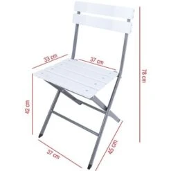 – SPECIFICHE: Misure sedia aperta: H 78 x L 37 x P 45 cm – Altezza seduta: H 42 cm – Misure seduta: L 37 x P 33 cm – Altezza schienale: 34 cm – Misure sedia chiusa: H 90 x L 37 cm – Spessore seduta: 17 mm – Diametro tubi: 15-30 mm – Materiale ripiano: plastica Hdpe – Materiale telaio: acciaio verniciato a polvere – Colore: grigio chiaro, bianco – N° sedie del set: 2 pz – Art. RE6820