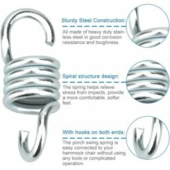 - 【Gancio per appendere versatile】 La molla del gancio è progettata per appendere amache, dondoli per portico, dondoli, sedie girevoli, sacchi da boxe o altri oggetti pesanti. Gancio ideale per montare la tua amaca sospesa o sedia a dondolo.