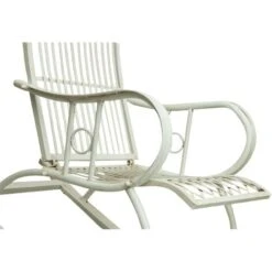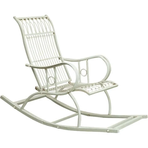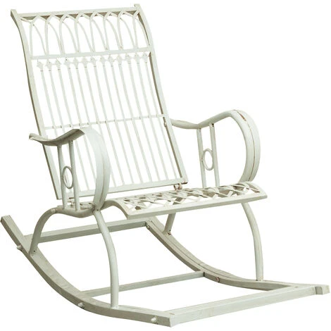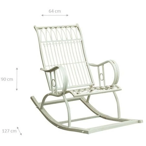 FERRO BATTUTO – La sedia dondolo da giardino è realizzata interamente in fatto battuto successivamente rifinito con vernice bianca anticata