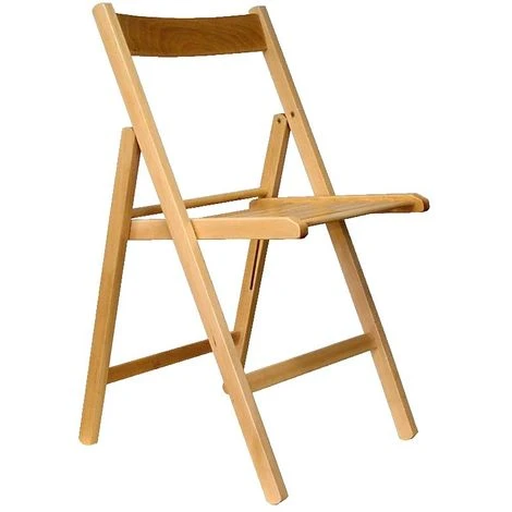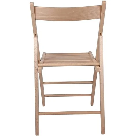 Sedia pieghevole realizzata in faggio massello, verniciato naturale. Puoi chiuderla e riporla quando non la usi, così da occupare pochissimo spazio.