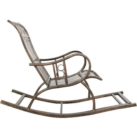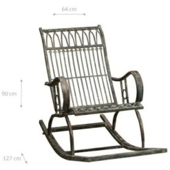 Sedia poltrona a dondolo con braccioli larghezza 127 cm, profondità 64 cm, altezza 90 cm, realizzata in ferro battuto. Rappresenta un comodo e rilassante complemento d’arredo funzionale ed elegante, abbinabile ed utilizzabile in qualsiasi ambiente.