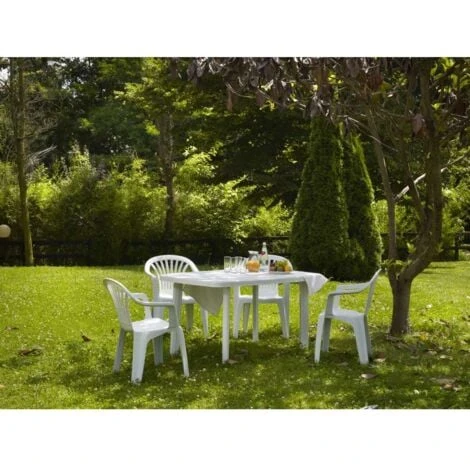 Sedia monoblocco impilabile. Schienale basso. In polipropilene. Colore Bianco. Prodotto adatto ad un uso domestico, non ad uso professionale e commerciale.
