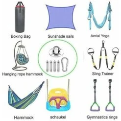 - Ampio utilizzo: supporto da soffitto professionale perfetto per sedia sospesa, lampada a sospensione, altalena dell’amore, amaca, sacco da boxe, imbracatura, tappetino da yoga, vela ombreggiante, sedia sospesa, sedile sospeso.