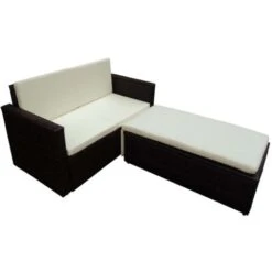 La consegna include un divano a 2 posti, un poggiapiedi e 5 cuscini. Nota: Consigliamo di coprire il set in caso di pioggia, neve e gelo.
