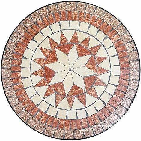 Ma ciò che rende davvero elegante e particolare questo set è la bellissima decorazione in mosaico presente sulla seduta e lo schienale delle sedie e sul piano del tavolo, realizzato interamente in terracotta bianca e rossa.