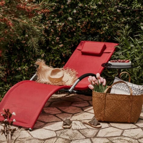 Il rivestimento in tessuto di teslin è molto piacevole e comodo. Grazie alla sua forma elegante la sdraio è ideale su ogni terrazza o giardino.