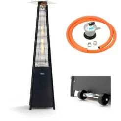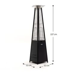Stufa A Gas Per Terrazza Uso Esterno Design Piramidale E Ruote 13kW Kekai Basil 52x52x227 Cm Regolatore E Tubo Color Nero