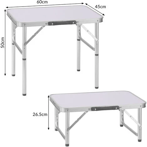 CONTENUTO DELLA CONFEZIONE:1 x Tavolo Campeggio Picnic Alluminio 60x45x50 Pieghevole Valigetta Piano Formica