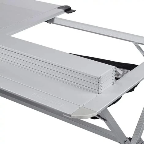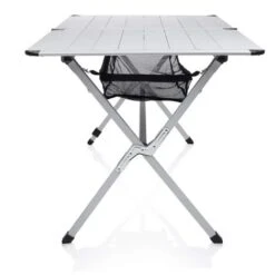 Grazie al robusto telaio di alluminio il tavolo da campeggio Campart Travel poggia stabilmente su qualsiasi superficie. Il piano del tavolo può essere arrotolato in due parti separate per essere riposto comodamente e può essere facilmente agganciato al telaio. Il tavolo Campart Travel include una traversa extra nel telaio per una maggiore stabilità . La lamina in alluminio del piano del tavolo è resistente alle intemperie, per permetterti di tenere il tavolo all’esterno per una certa quantità di tempo.