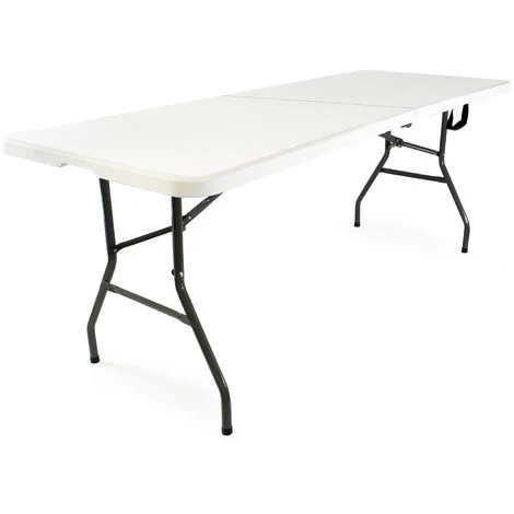 Per le grigliate, i viaggi in campeggio, le attività all’aperto o semplicemente a casa: questo pratico tavolo pieghevole è molto flessibile e può essere usato ovunque. Facile da trasportare e da riporre, è un’alternativa salvaspazio ai classici tavoli da tenda in legno molto popolari ma molto ingombranti. Il piano del tavolo in plastica, facile da pulire, è sostenuto da un telaio in acciaio robusto e durevole con piedi che non scivolano e non graffiano il pavimento. Da aperto, il tavolo è abbastanza grande da ospitare da quattro a sei persone.