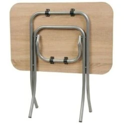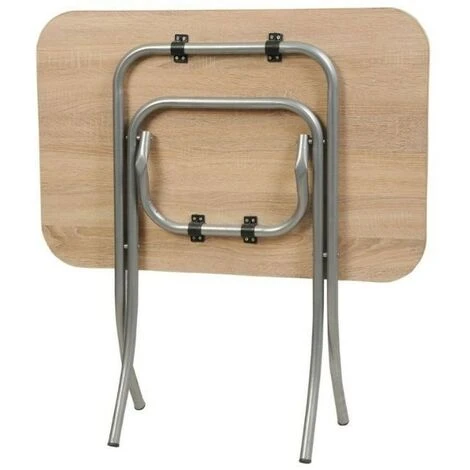 Tavolo semplice ed essenziale con il grande vantaggio di richiudersi completamente dopo l’uso. In termini di spazio risulta essere un grande vantaggio per riporlo comodamente in cantina o garage. Viste le dimensioni compatte può anche essere utilizzato come piano di appoggio aggiuntivo.