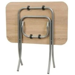 Tavolo semplice ed essenziale con il grande vantaggio di richiudersi completamente dopo l’uso. In termini di spazio risulta essere un grande vantaggio per riporlo comodamente in cantina o garage. Viste le dimensioni compatte può anche essere utilizzato come piano di appoggio aggiuntivo.
