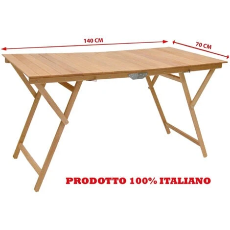 Tavolo tavolino pieghevole richiudibile legno di faggio naturale 140×70 cm campeggio casa.