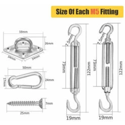 Kit di fissaggio per vele ombreggianti da 6 pollici, set di accessori per il fissaggio di rettangoli triangolari quadrati