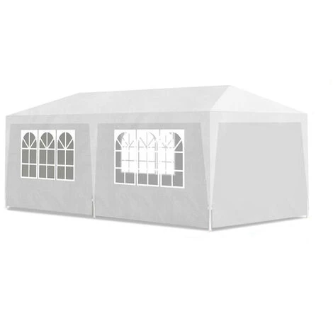 Gazebo per feste ed eventi di dimensioni 3×6 mt, robusto, attraente e versatile!Il telo realizzato in polietilene Trama Oxford 210 Den Grado-A, garantisce impermeabilità e protezione dai raggi UV al 99%. Il telaio è in acciaio antiruggine verniciato in polvere, leggero ma resistente. Il polietilene lascia filtrare il leggero bagliore dei raggi solari attraverso il soffitto traslucido. Inoltre, le accattivanti finestre su entrambi i lati permettono la vista verso l’esterno e favoriscono l’ingresso della luce. I pannelli possono essere installati individualmente tramite velcro in modo rapido ed intuitivo a seconda delle esigenze del caso. Il montaggio della struttura è estremamente facile e non richiede l’utilizzo di attrezzi particolari.