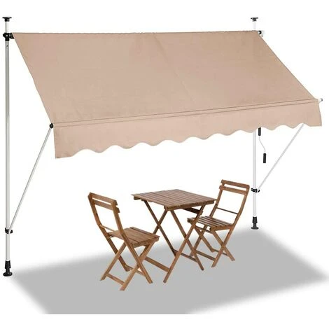 1 x Tenda Sole Balcone Estensibile Parasole Avvolgibile Esterno con Gambe 250cm Beig