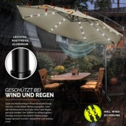 Il telaio in alluminio antiruggine garantisce la massima stabilità. La stabile base garantisce un sufficiente equilibrio e riesce a tenere in piedi l’ombrellone anche nelle giornate ventose.