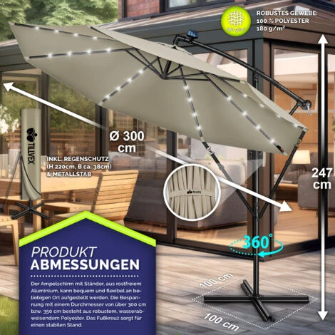 L’ombrellone è dotato di luci LED composti da 32 LED con interruttore on/off.