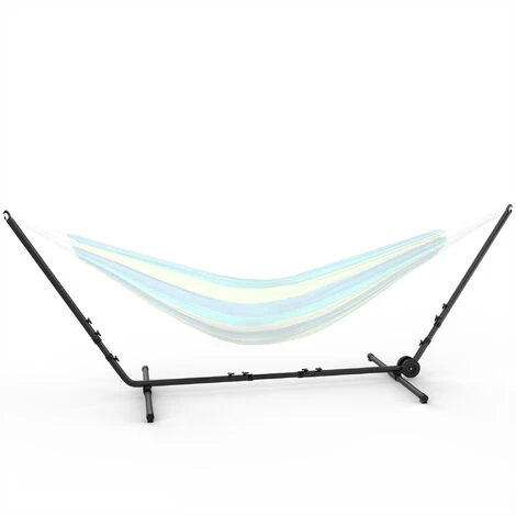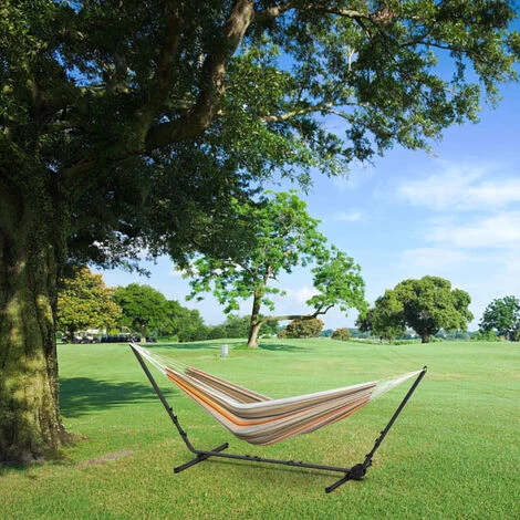 Lo stand particolarmente pratico permette di montare l’amaca in spazi aperti e ovunque si voglia