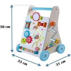 - Accessoriato di una maniglia sopra cui bambino può chinarsi, le ruote protette grazie alla gomma. Questi soluzioni mettono in evidenza cosi l’importanza de la securità e la protezione durante l’attività come la riduzione del suono e della fessurazione delle superficie.
