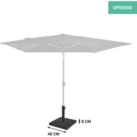 VONROC Base quadrata per ombrellone in metallo con riempimento in cemento. 45x45x5,2cm. Peso 26kg. Per Parasole Rosolina e per pali di diametro 35mm, 38mm o 48mm