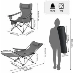 ●Leggera e pieghevole: La sedia da campeggio è. pieghevole e pesa solo 4 kg. Una volta ripiegata. può. essere riposta nella borsa da trasporto inclusa. comoda da stoccare o spostare. Dimensioni da ripiegata: 93x18x18 cm. Dimensioni da aperta: 115x84x88.5 cm (come sedia). 160x84x44 cm (come sdraio)