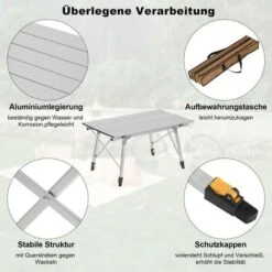 - Contenuto del pacco: 1xtavolino campeggio pieghevole + 1xcustodia + 1xistruzioni di montaggio