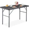 - Piano spazioso: il piano del tavolo di dimensioni 120x60cm ti offre ampio spazio. sufficiente per mangiare comodamente anche in 4-6 persone. Alimenti. dolci e bevande possono essere riposti con stabilità . sul piano di questo tavolo pieghevole da esterno.