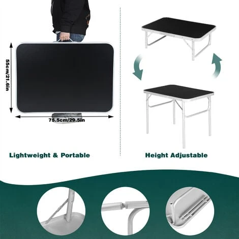 - In pochi semplici passaggi puoi piegarlo a forma di valigietta e portare facilmente questo tavolo leggero con maniglia ovunque vuoi.